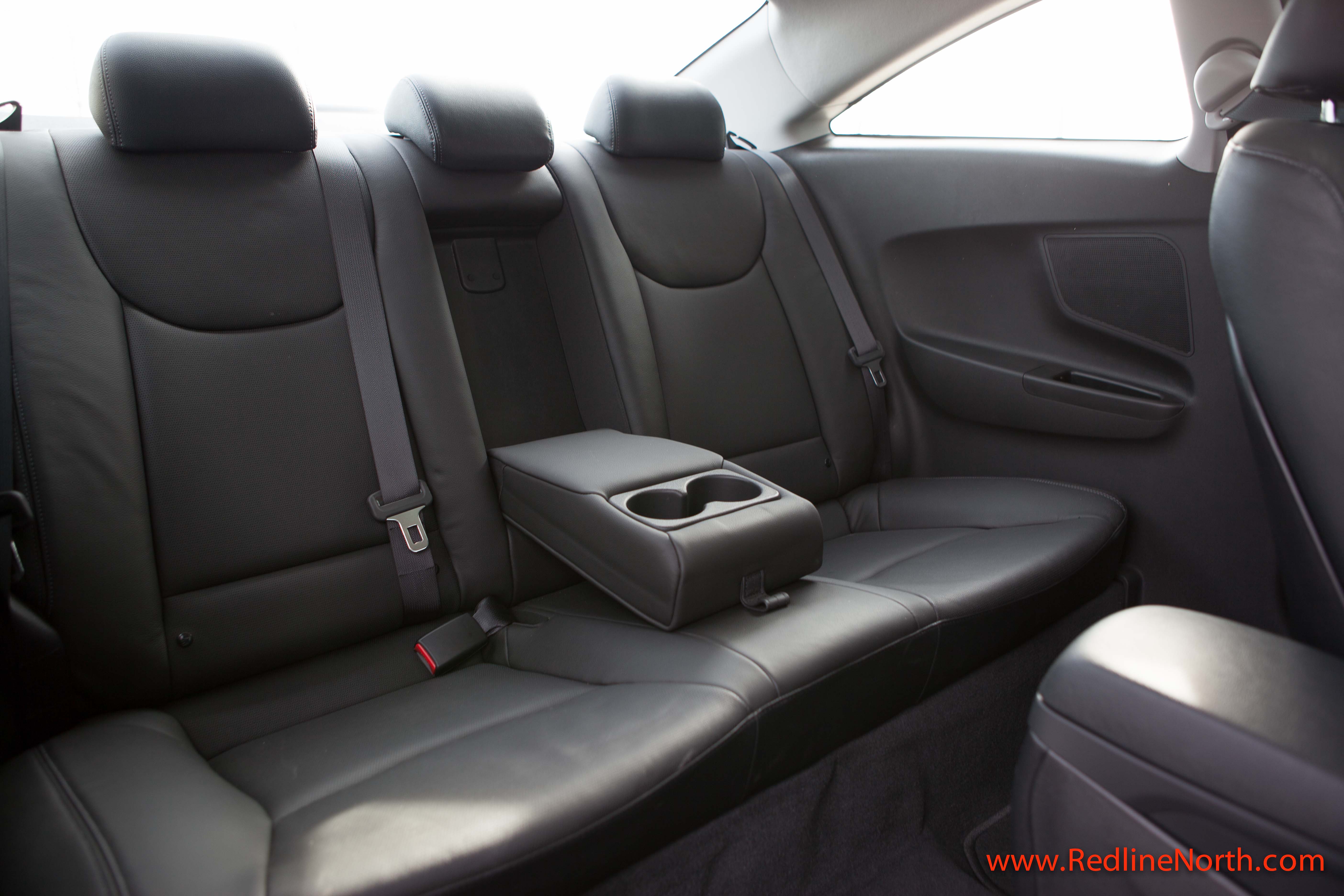 Considering it is a two door coupe, there is surprisingly a fair amount of legroom in the back seats and a nice interior touch is the cup holders in the center arm rest.