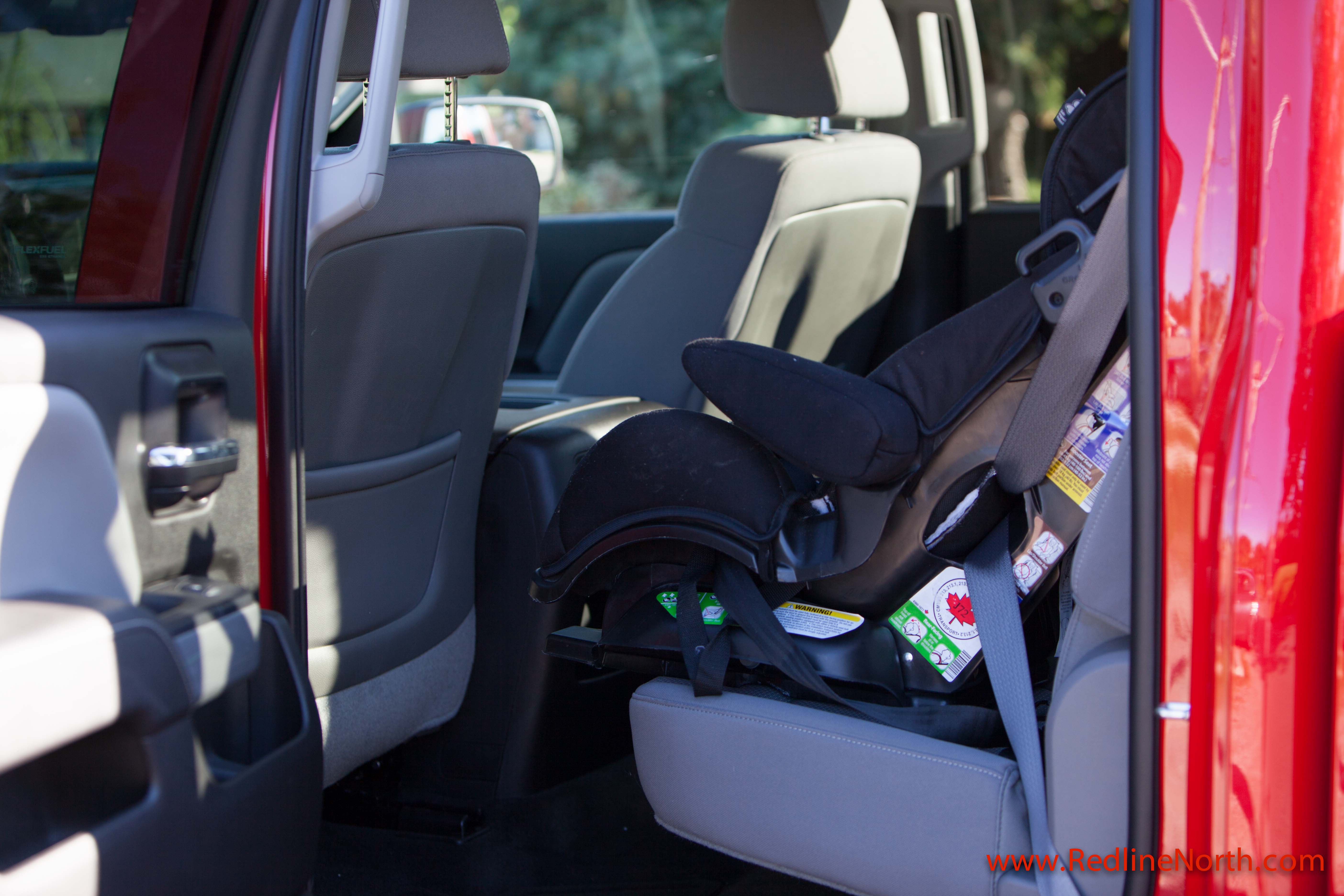 The Silverado with the crew cab comes with two box options, the newly available 6-foot 6-inch cargo box and the 5-foot, 8-inch box. Opting for the 6-foot 6 inch box does bring the Silverado within a sliver of 20 feet long, however, the extra interior room in our opinion makes up to it. For those urban cowboys with families this means the ability to install three car seats with ease. Even rear facing seats that notoriously require additional space fit well in the back of the cab. The additional length, does make it a bit of a challenge to find suitable spaces in parking lots however, for many the trade off is likely worth it.