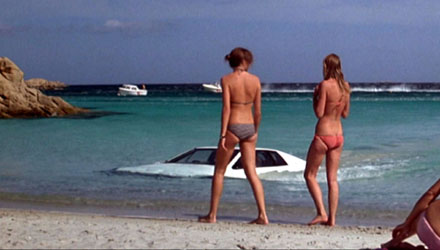 First up the Lotus Esprit. Who can forget the underwater scene from the Spy Who Loved Me where James Bond’s white Lotus Esprit converts into submarine mode after driving off a dock into the water. There is also the classic scene with the car ‘driving’ in from the ocean onto a crowded beach – much to the amazement of beach goers.