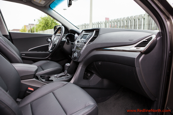 A handy feature in the 2013 Santa Fe is the adjustable steering control to adapt to personal driving styles and road conditions. Drivers can select from normal, sport or comfort mode. Sport mode noticeably tightened up the steering providing the driver with more responsiveness which is useful in city traffic. While out on the highway heading along Highway 401, comfort mode provided a more relaxed feel with more play in the steering wheel. Normal provided middle of the road feeling between the two and as a result wasn’t used a whole lot.